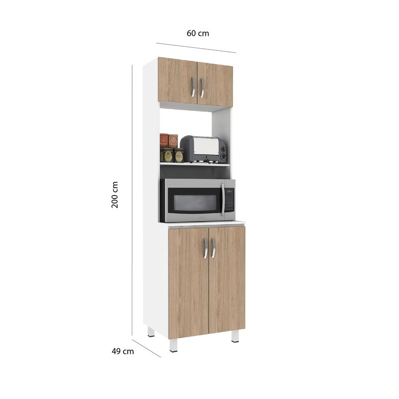 Alacena Despensa Porta Microondas 60cm En MDP 4 Puertas Rovere