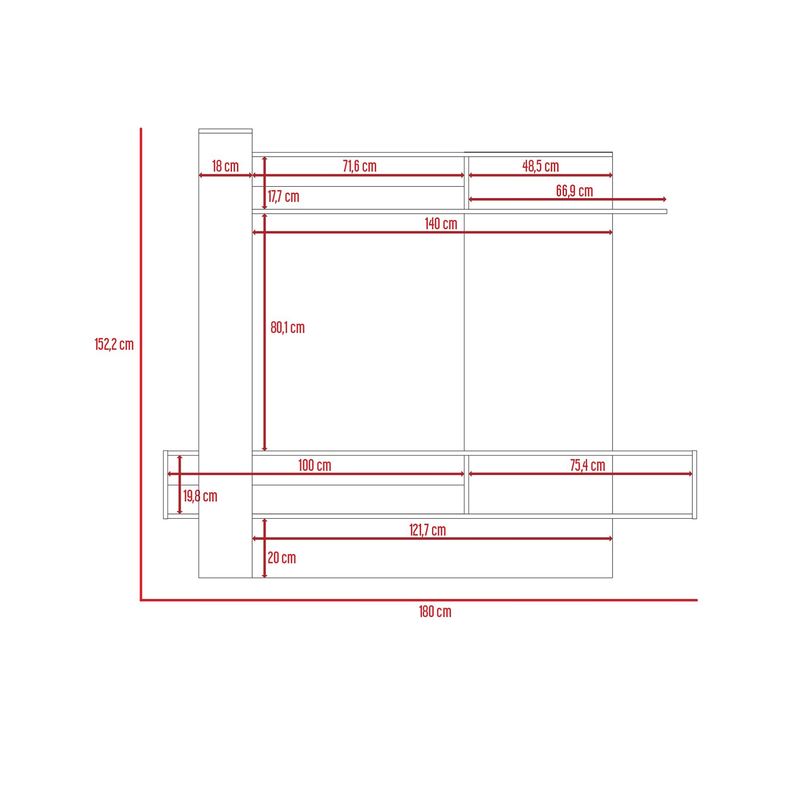 • Medidas: Alto: 152,2 cm Largo: 180 cm Profundidad: 40,2 cm