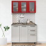 Combo de Mueble Inferior para cocina, con dos cajones y tres puertas en acero carbonado, fregadero de acero inoxidable, patas con altura regulable color blanco con brillo UV mas Mueble Superior con tres puertas en acero carbonado con vidrio, color Rojo con brillo UV, gran espacio para almacenar todo lo necesario en un solo sitio, con atractivo acabado, manijas exclusivas con protección UV, bisagras de acero y con diseño totalmente moderno.