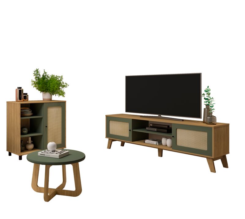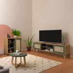 Mueble TV 75" Charlotte Color Roble Y Menta