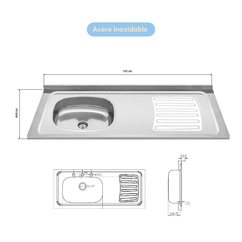Incluye lavaplatos en acero inoxidable de 105cm pozuelo izquierdo.