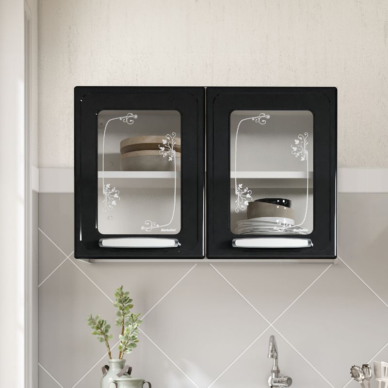 Gabinete de cocina en acero 80cm 2 puertas vidrio