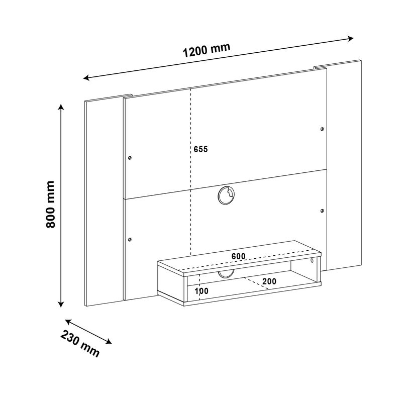 Además, cuenta con nichos para aparatos electrónicos, entrepaños, espacio para “Pantalla de hasta 42”. Ya viene con los herrajes para fijar la pantalla al panel, lugares para accesorios y/o decoraciones, sistema de cables ocultos.