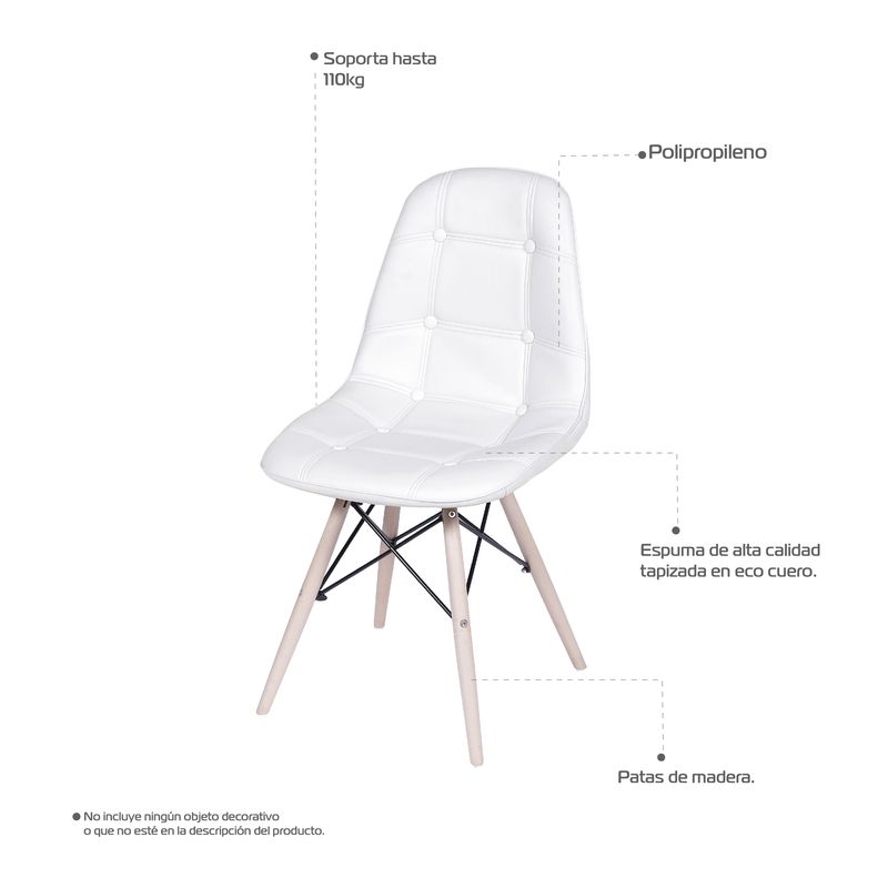 Silla 5CERO con botones para comerdor, sala, restaurante Bertolini Color Blanca
