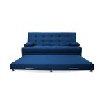 Sofá cama firme de gran confort, excelente soporte, 3 posiciones, tapizado en tela tipo Lino color Azul, patas en madera con antideslizante, estructura en madera Pino-inmunizada y espuma de alta densidad.