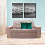 Sofá cama semidoble 180x90cm tela tipo lino 2 cuerpos Camel